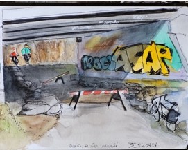 Principalement autodidacte, Marcelle Chabot pratique activement le croquis urbain dans la région comme dans ses déplacements. Aujourd’hui retraitée après une riche carrière dans la recherche et les politiques publiques, elle aborde l’espace avec le même regard analytique, désormais déplacé vers la lumière, les lignes et les rythmes de la rue. Elle se forme notamment en dessin académique et en aquarelle. Elle est membre du comité d’administration du chapitre régional Ottawa Urban Sketchers.